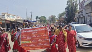 धमतरी, 27 फरवरी 2026। छत्तीसगढ़ के धमतरी जिले में आंगनबाड़ी कार्यकर्ता और सहायिका संघ ने अपनी विभिन्न मांगों, विशेष रूप से नियमितीकरण को लेकर दो दिवसीय धरना प्रदर्शन शुरू किया। प्रदेश नेतृत्व के आह्वान पर आयोजित इस प्रदर्शन में नगरी वनांचल क्षेत्र सहित आसपास के इलाकों से बड़ी संख्या में महिलाएं शामिल हुईं। भीषण गर्मी के बावजूद सैकड़ों कार्यकर्ताओं ने अपनी मांगों को लेकर आवाज बुलंद की।