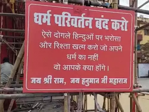 धर्मांतरण रोकने दुर्गा पंडालों में लगे बैनर..