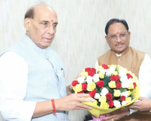 Khabri Chai Desk : रायपुर। छत्तीसगढ़ के मुख्यमंत्री विष्णुदेव साय ने आज नई दिल्ली में केंद्रीय रक्षा मंत्री राजनाथ सिंह से उनके निवास पर सौजन्य मुलाक़ात की। इस बैठक में बिलासपुर एयरपोर्ट के विस्तार, रक्षा क्षेत्र के विकास, पूरे प्रदेश में सेना भर्ती रैलियों के आयोजन और नौसैनिक पोतों के नामकरण जैसे महत्वपूर्ण विषयों पर चर्चा हुई। बैठक में केंद्रीय आवासन एवं शहरी कार्य राज्यमंत्री तोखन साहू और मुख्यमंत्री के प्रमुख सचिव सुबोध कुमार सिंह भी मौजूद थे।