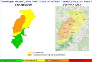 वहीं, यलो अलर्ट वाले जिलों में नारायणपुर, कोंडागांव, रायगढ़, जशपुर, सुरगुजा और बलरामपुर शामिल हैं। इन इलाकों में भी मध्यम बारिश का अनुमान है।