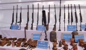 बरामद सामग्री में BGL रॉकेट लॉन्चर (1), BGL लॉन्चर (6), 12 बोर राइफल (6), सिंगल शॉट राइफल (3), देशी कट्टा (1), और BGL बैरल (3) शामिल हैं। इसके अलावा ग्राइंडर, हैंड ड्रिल, वेल्डिंग शील्ड, बैरल पार्ट्स, टेबल वाइस, लोहे के पाइप जैसे उपकरण भी मिले हैं।